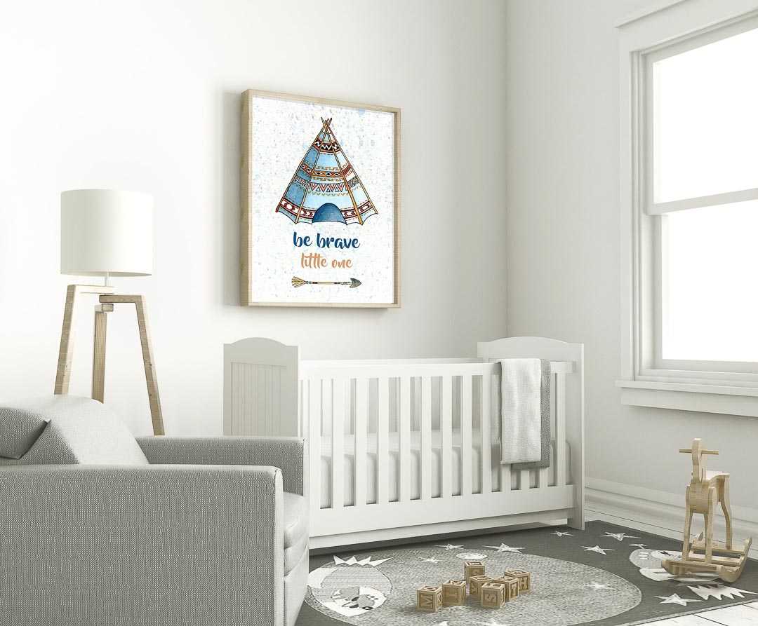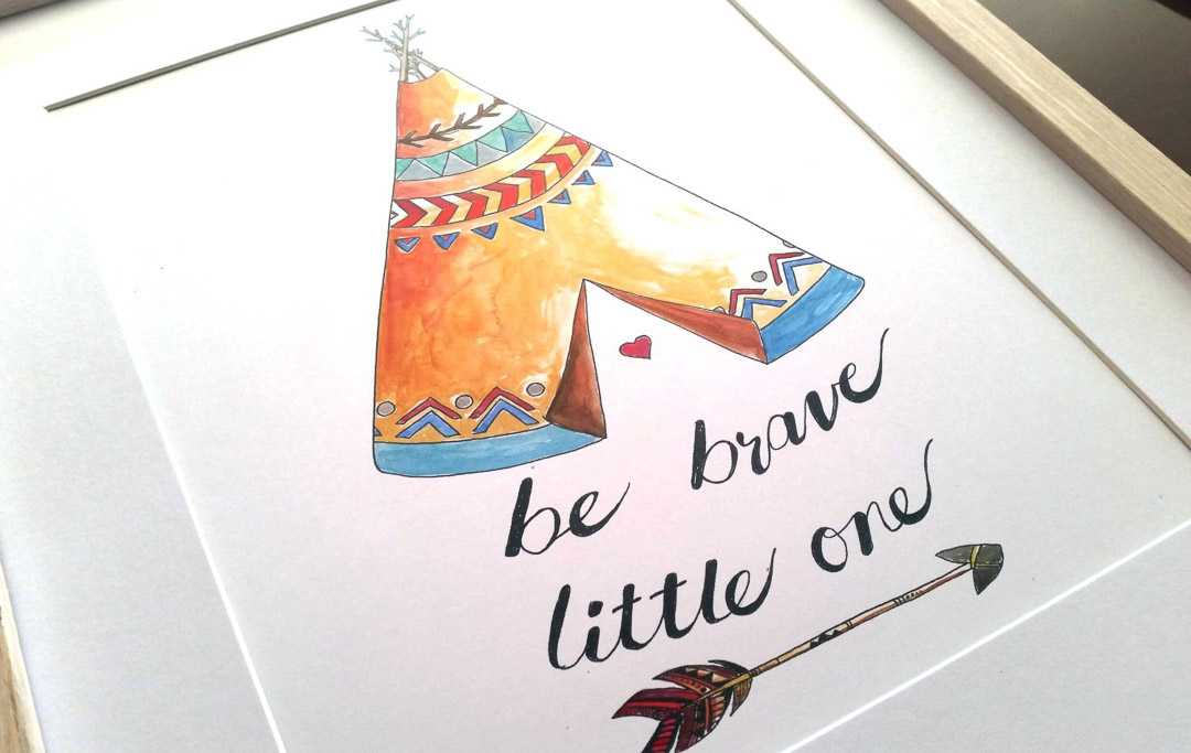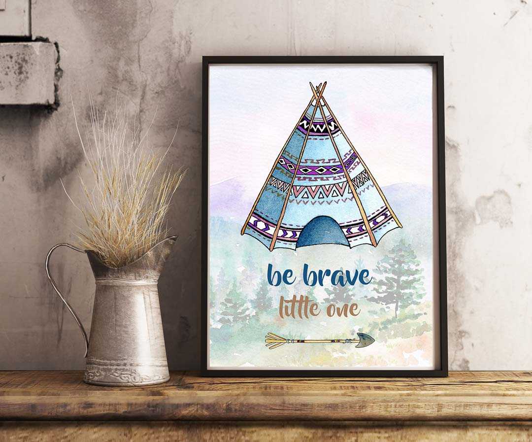 Ink & Ivy I Be Brave Little One, Boho Teepee, Nursery Art Print