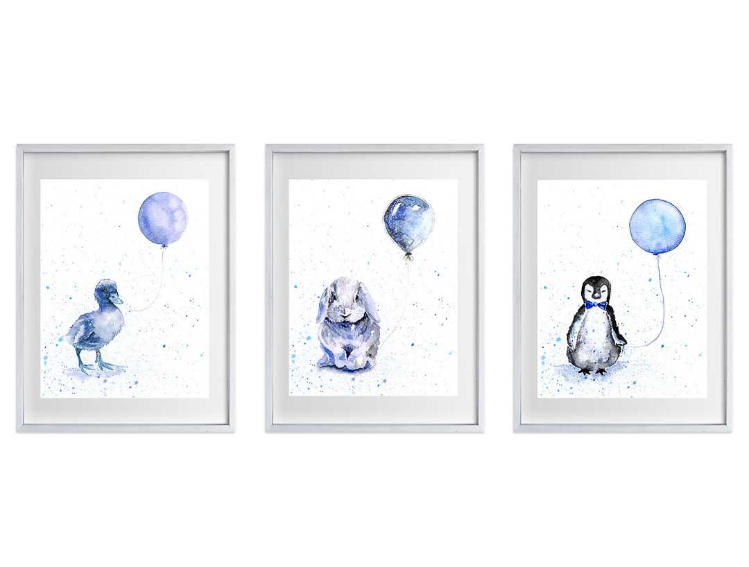 Ink & Ivy I Cute Blue Baby Animals holding balloons - Set of 3