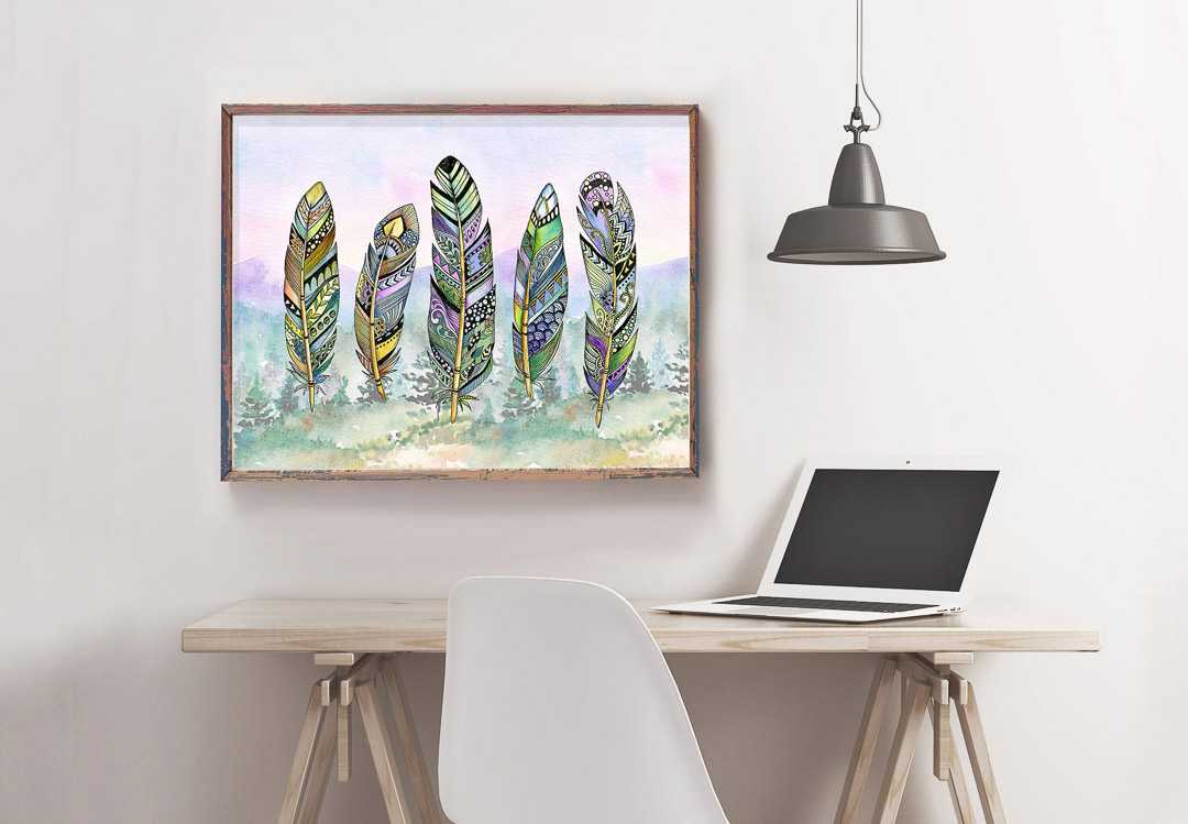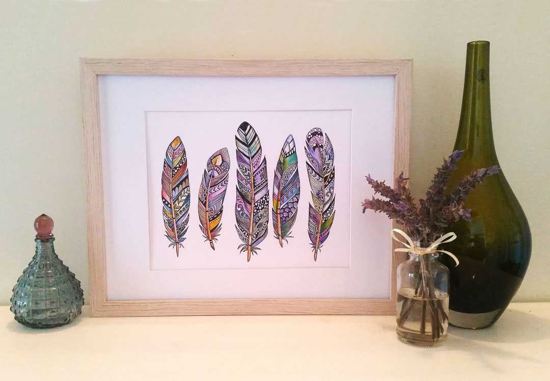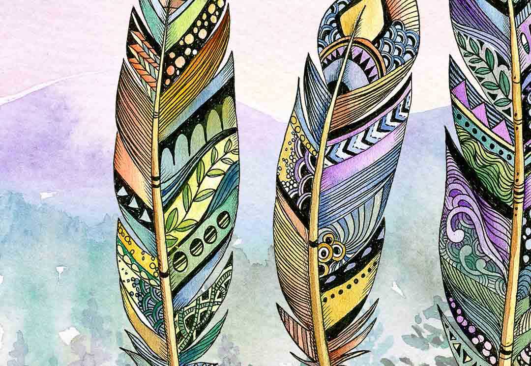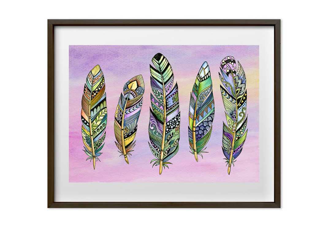 Ink & Ivy I Tribal Themed, Three Zentangle Feathers, Art Print