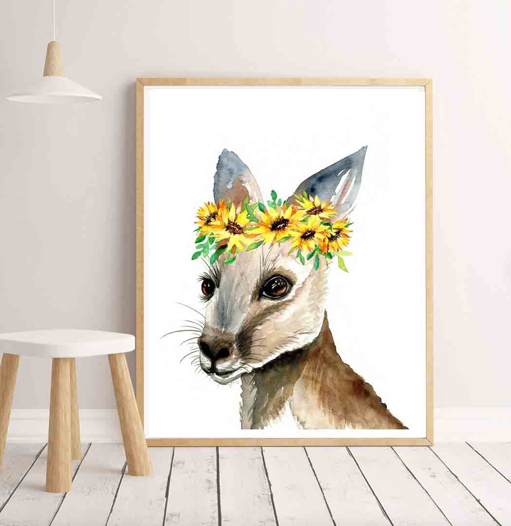 This beautiful animal watercolour print would be a stunning addition to your little one's animal-themed nursery. This listing is for a print with a sunflower crown, but there are 15 prints to choose from so please write your selection in the text box provided.