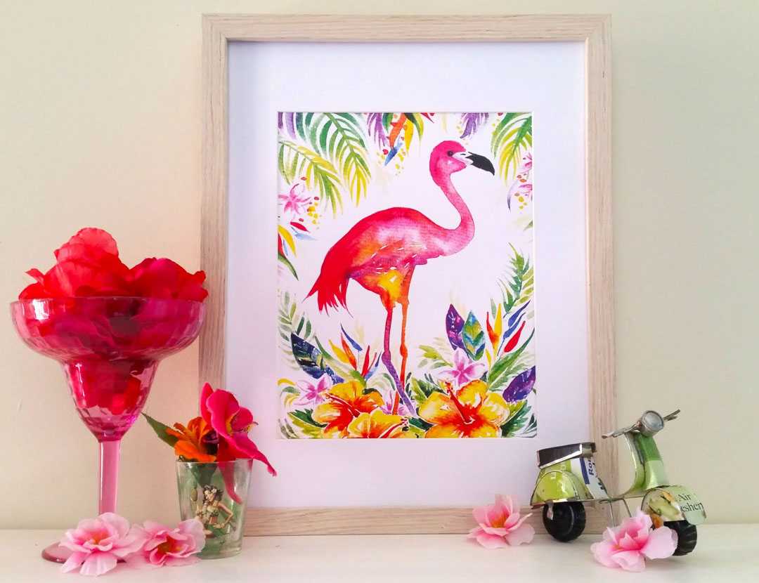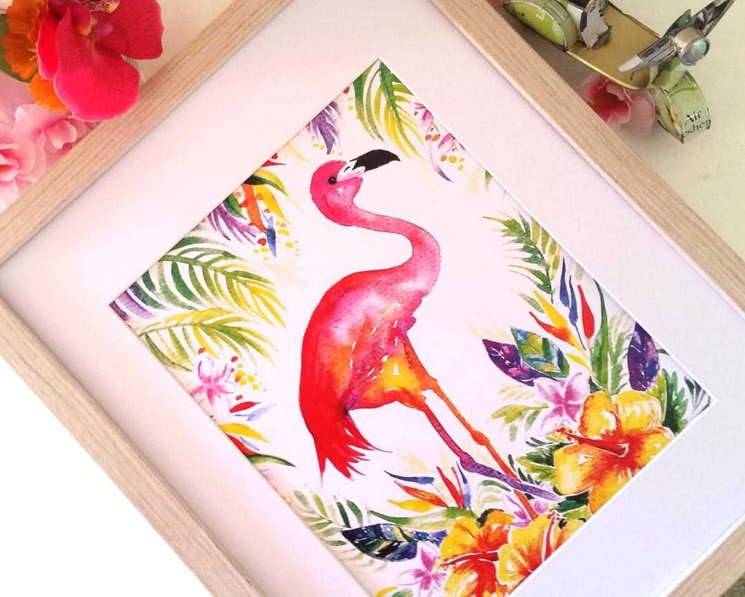 Bright pink flamingo watercolour print. Add a dash of the tropics to your home decor or girl's bedroom with this summery painting!
