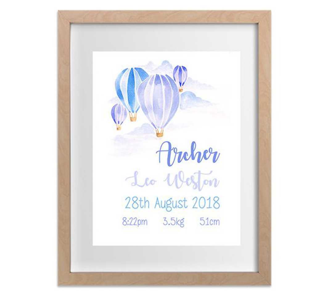 Ink & Ivy Boys Hot Air Balloon Birth Details Art Print