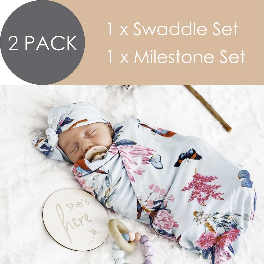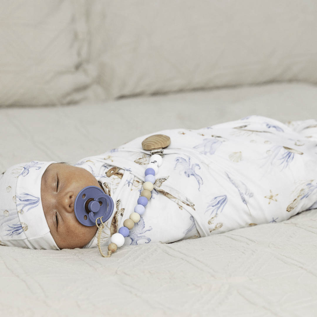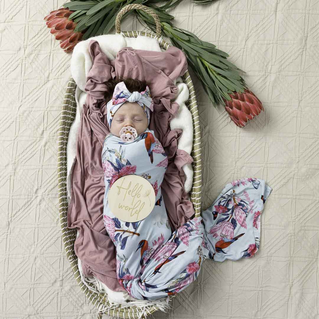 Generously sized our swaddle wraps double as a stroller canopy, nursing cover, burp cloth, blanket and more. To complete the look, and to make Mama’s long-awaited new baby pictures even more adorable, we have added a matching beanie or headband to create the most adorable swaddle sets.