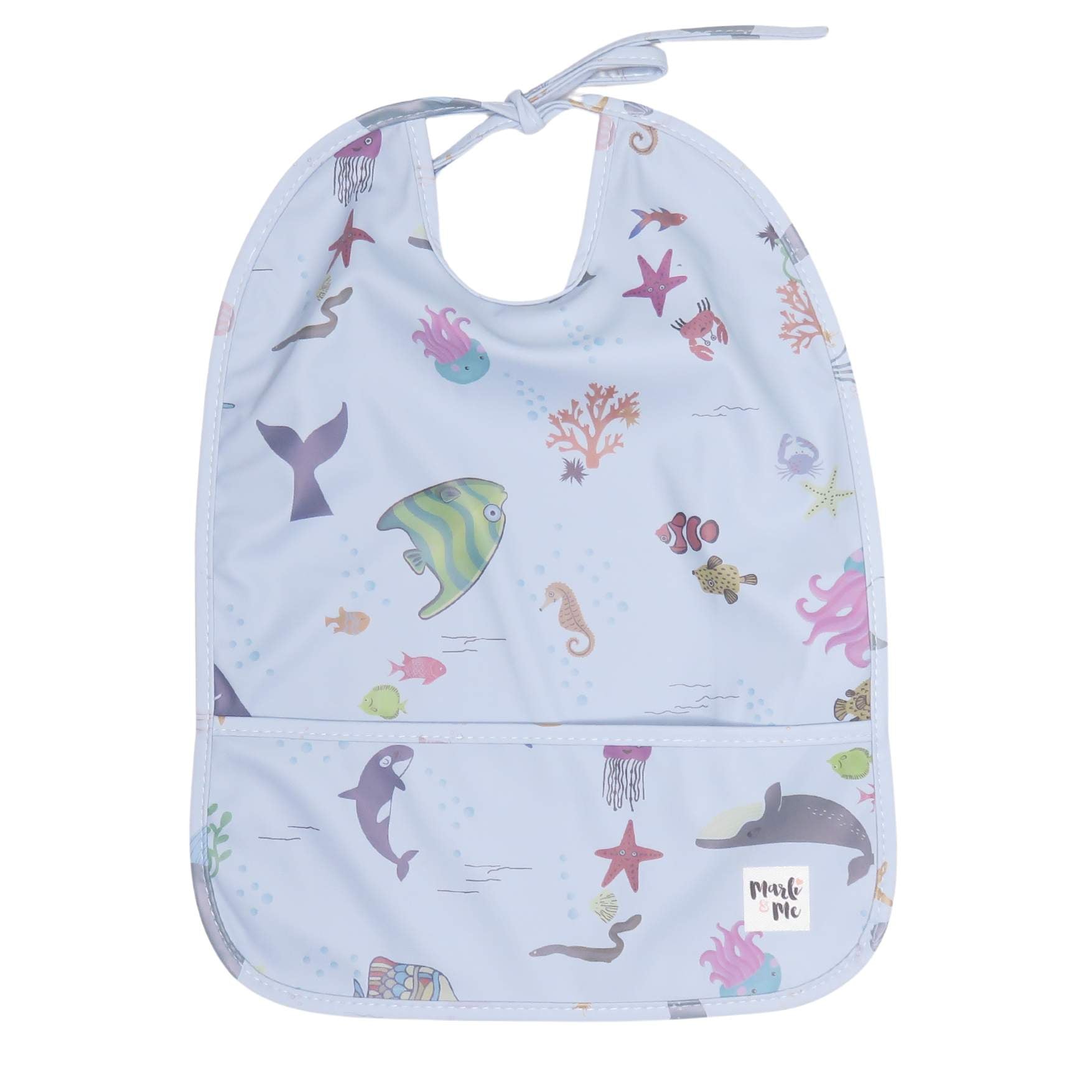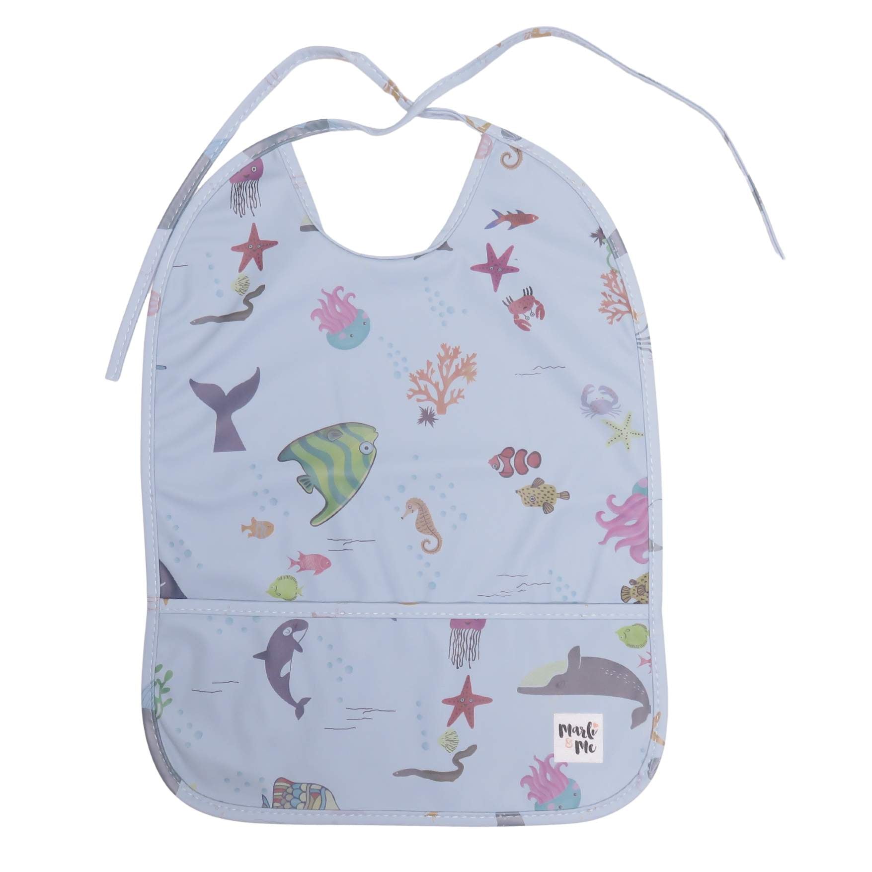 Our tie-up feeding bibs feature cute designs and a handy pocket to catch all the spills and crumbs associated with messy little eaters.